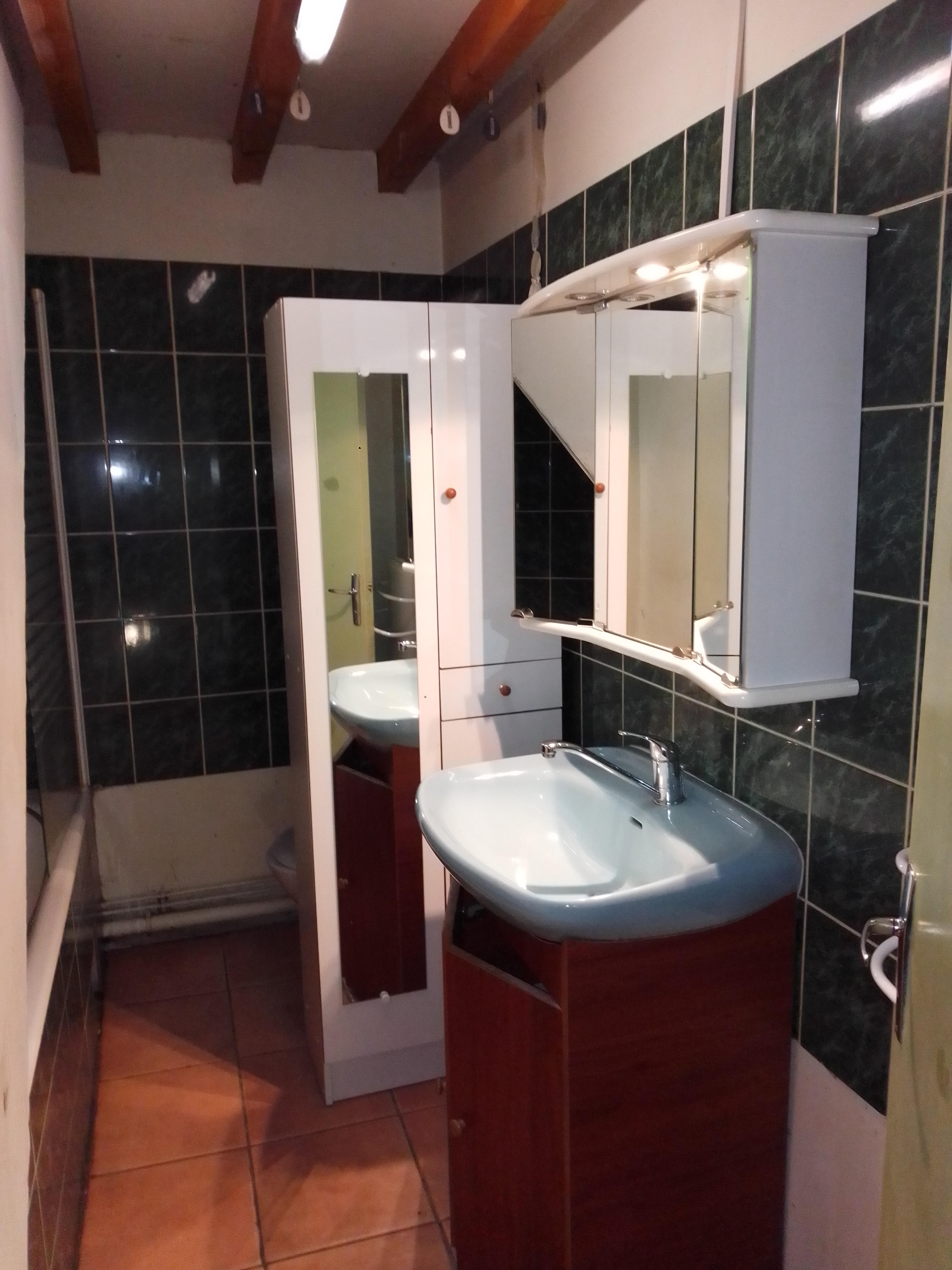 - 1er étage : deux chambres, salle de bains avec W.C.