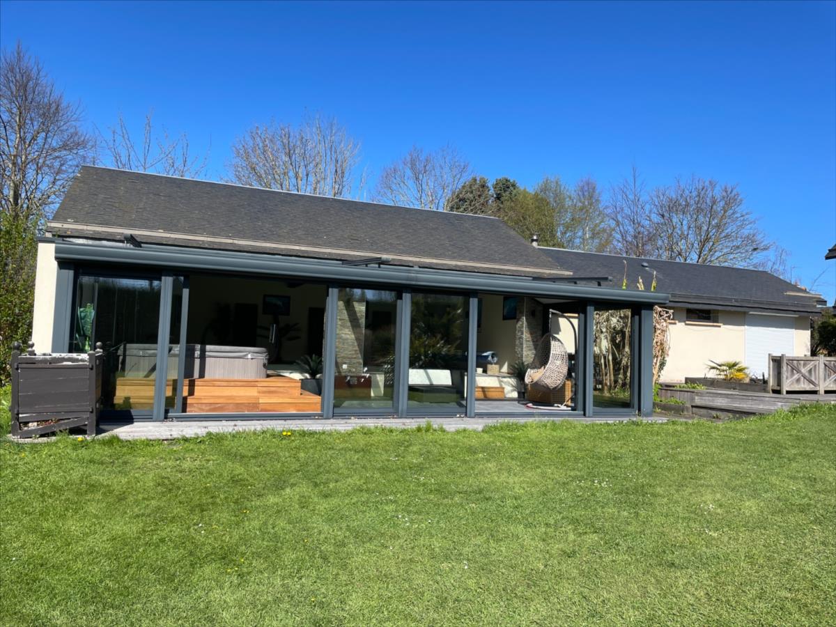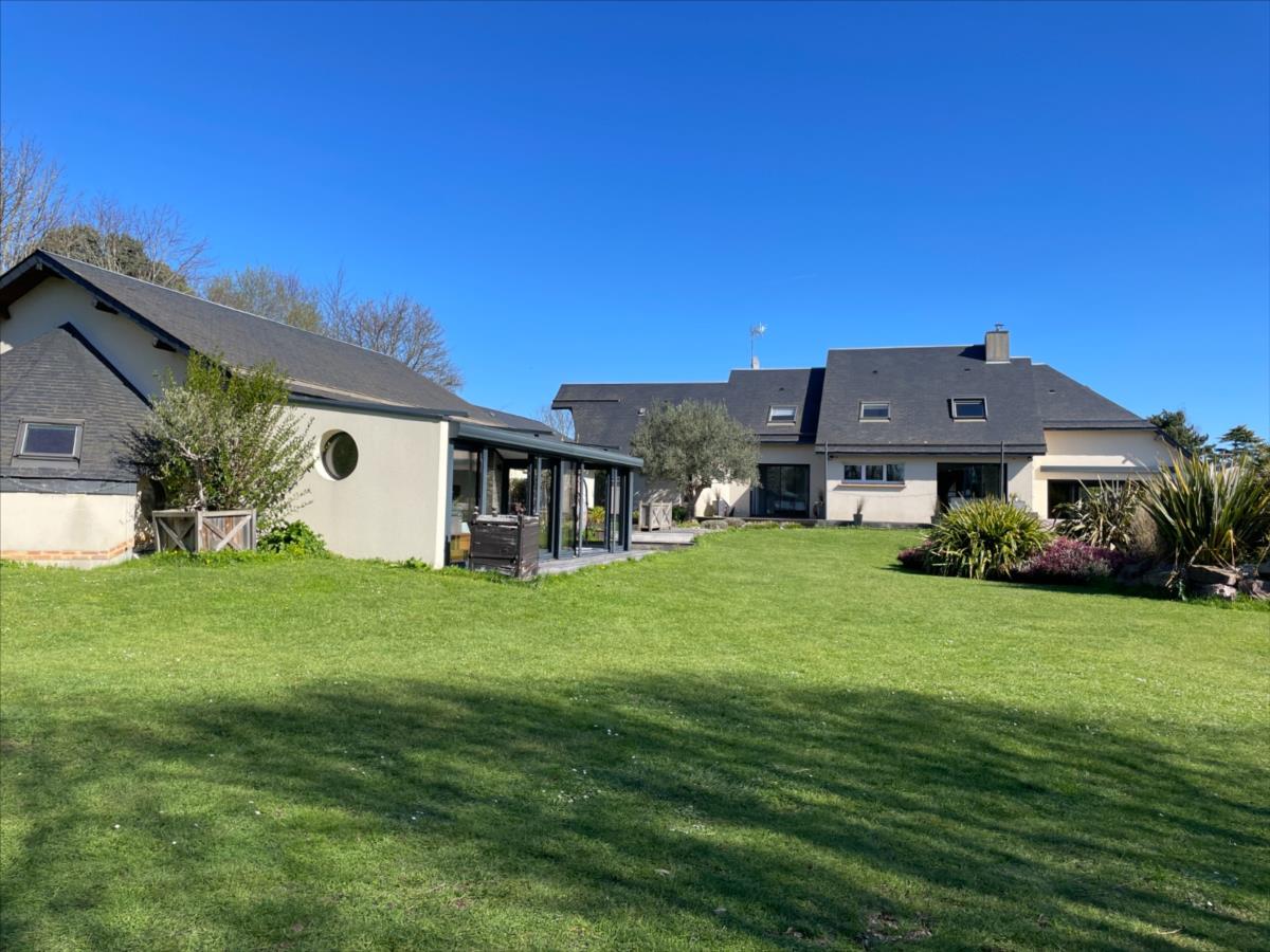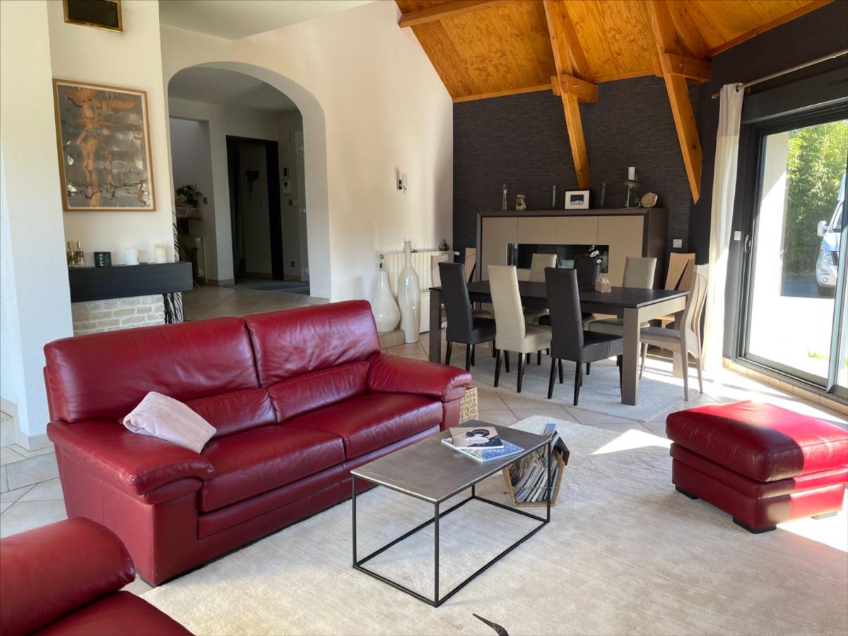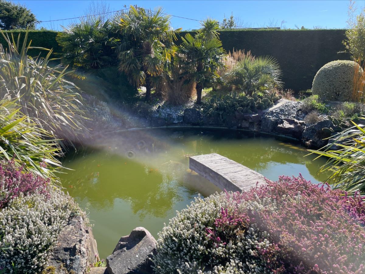 A l'abri des regards, Maison au style contemporain d'environ 200 m² sur magnifique terrain arboré et clos de 3 512 m² agrémenté d'une petite pièce d'eau avec poissons.