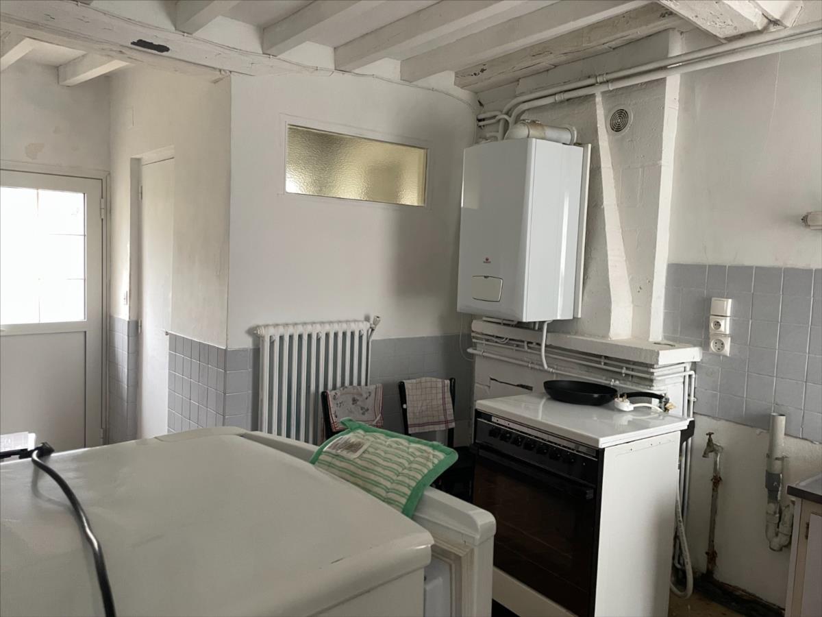 Centre bourg de Fleury sur OrneMaison ancienne construite en pierres, avec au rez-de-chaussée : séjour 15 m² et cuisine 12,5 m², trois chambres au 1er étage dont deux communicantes et une grande chambre mansardée dans les combles, le tout env. 73 m².Jardin d'agrément de 228 m² avec un garage de construction légère vétuste.Pas de tout à l'égout
