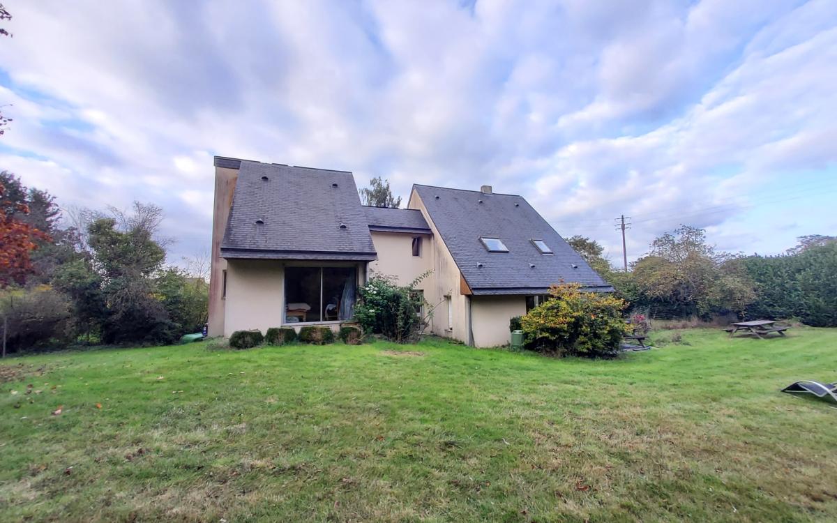 A Thury-Harcourt (CALVADOS) 14220. Une maison d'architecte située au calme comprenant : - au rez-de-chaussée : cuisine, salon avec cheminée, salle à manger, chambre, bureau, salle de bains et W.C, garage. - à l'entresol : chambre avec salle de bains, wc, chambre. - au premier étage : palier desservant trois chambres, salle de bains, W.C, buanderie. - au dernier demi niveau : une chambre. Terrain sans vis à vis de 4572 m².