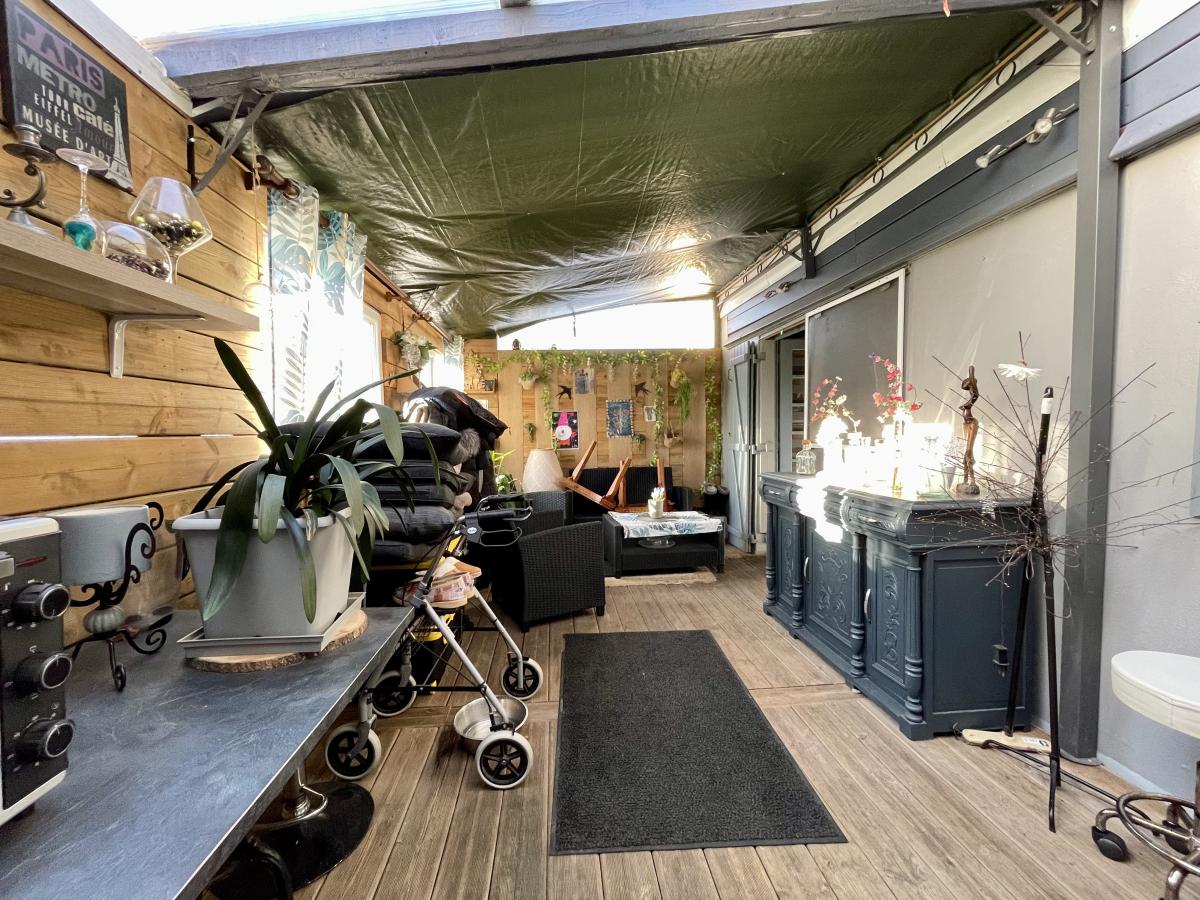 Au rez-de-chaussée Séjour avec cheminée , cuisine aménagée et équipée, autre salon , une chambre , une salle d'eau avec wc , deux pergolas .