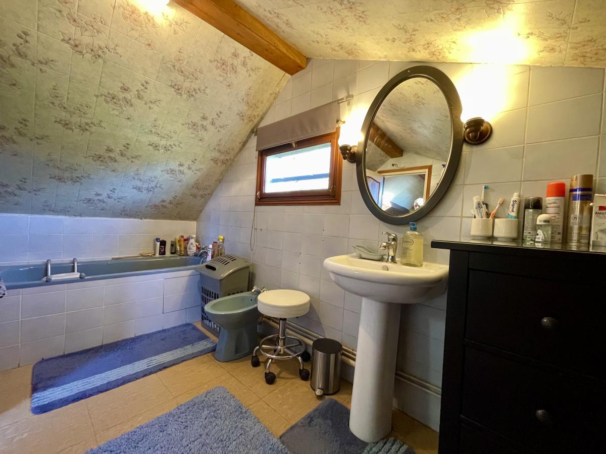 A l'étage une salle de bains , deux chambres en enfilade et dressing