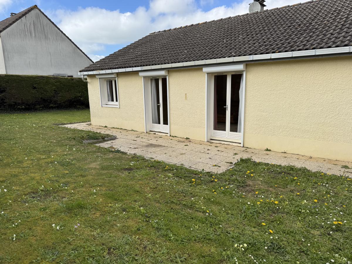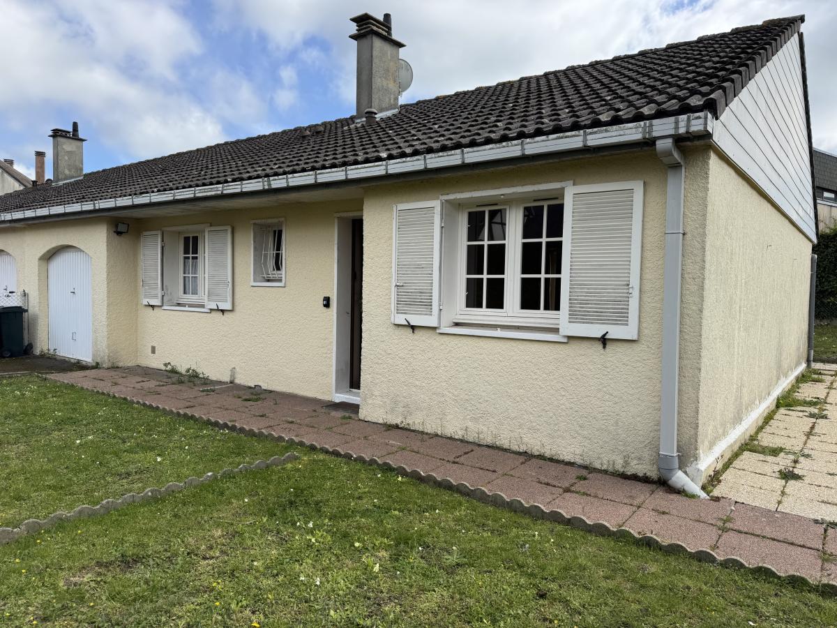 DEAUVILLE A proximité du golf Maison mitoyenne et de plain-pied comprenant: Entrée, séjour-salon, cuisine, 2 chambres, salle de bains, wc et garage. Terrain de 400m²