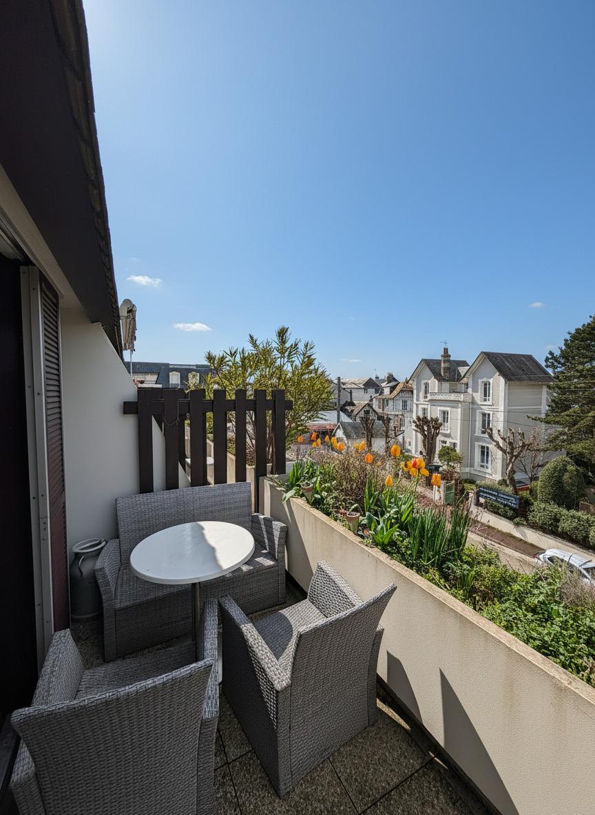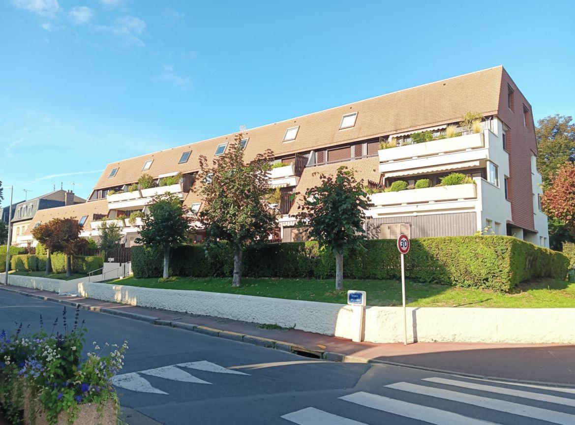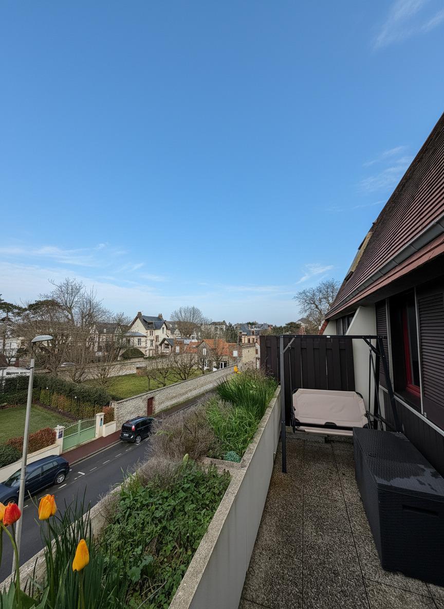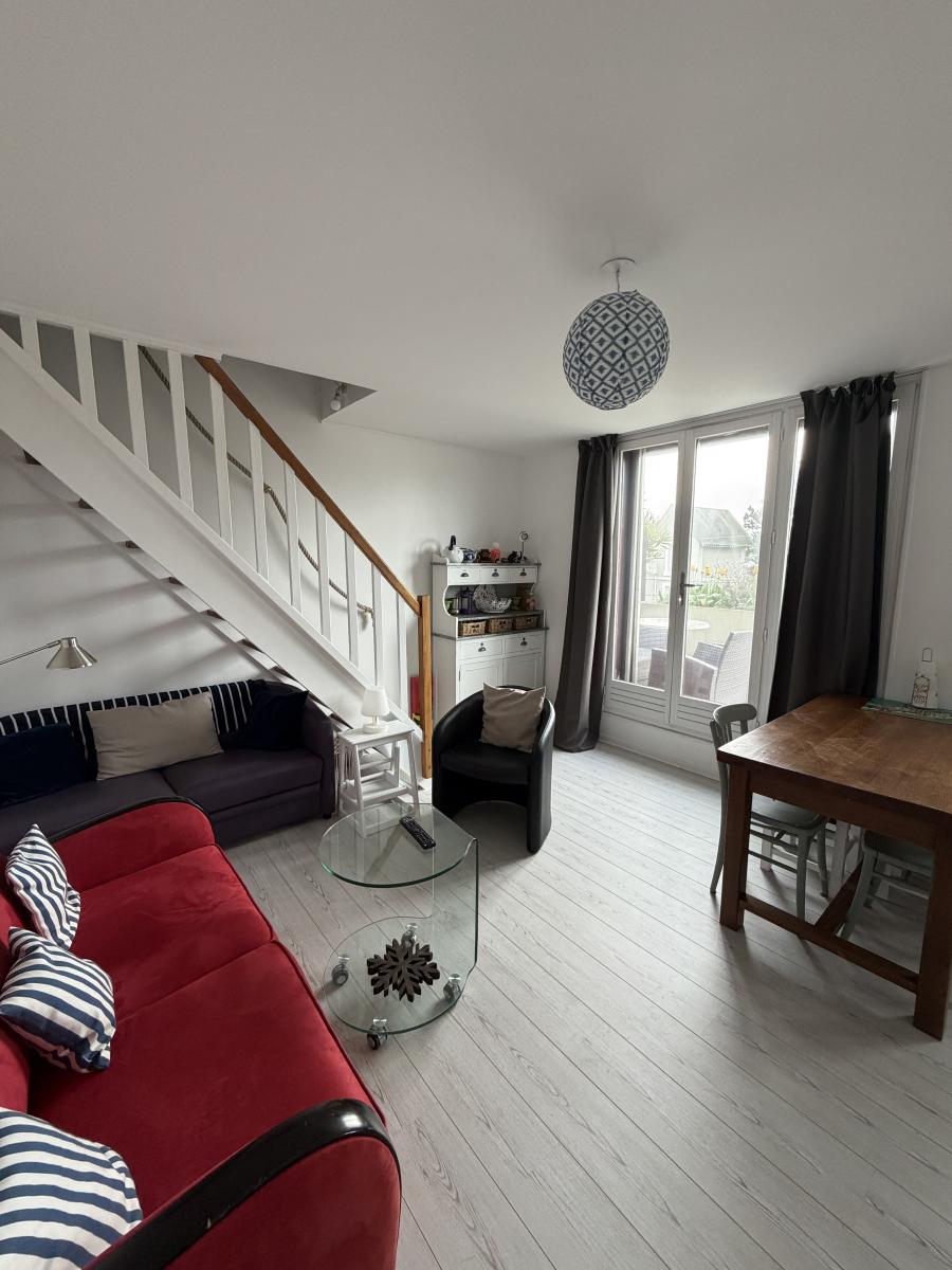 À vendre dans l’éventail de Cabourg, 2 pièces en duplex au 2ème et dernier étage avec terrasse, en parfait état.