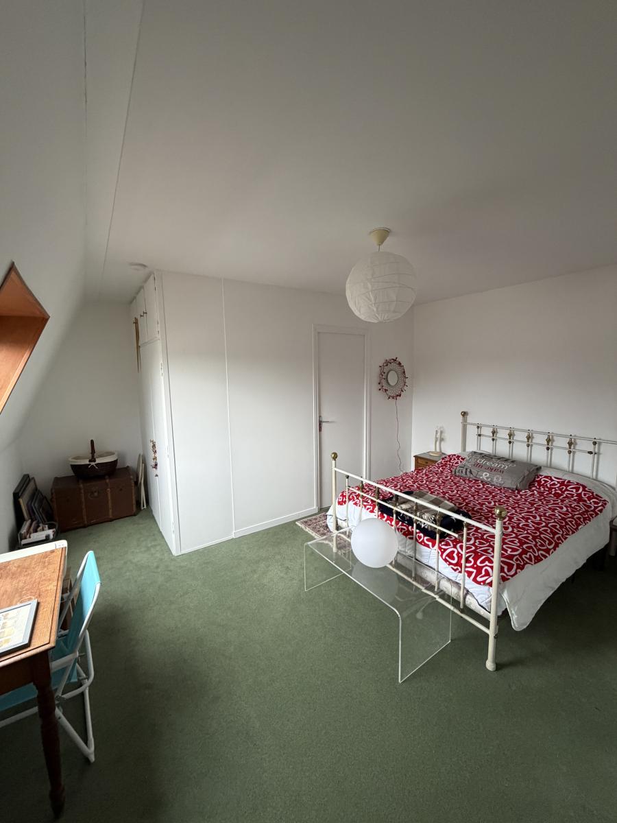 À l’étage, chambre à coucher avec rangements, salle d’eau avec WC