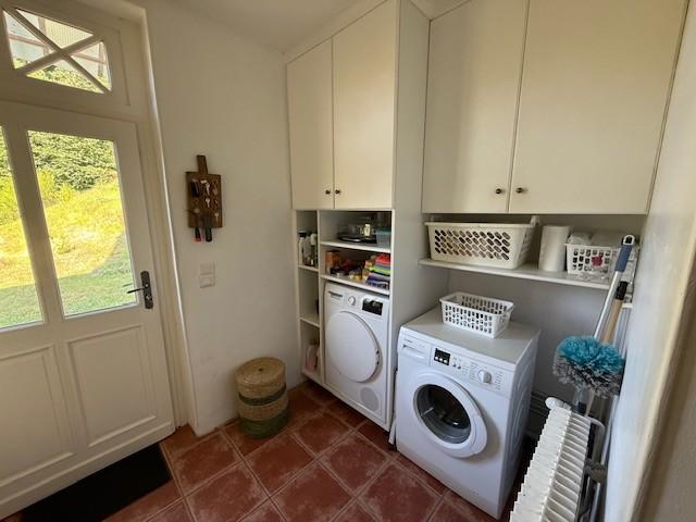 - Au rez-de-chaussée : Entrée, placards, wc, buanderie-lingerie, arrière-cuisine, cuisine aménagée et équipée, salle à manger, salon avec cheminée.