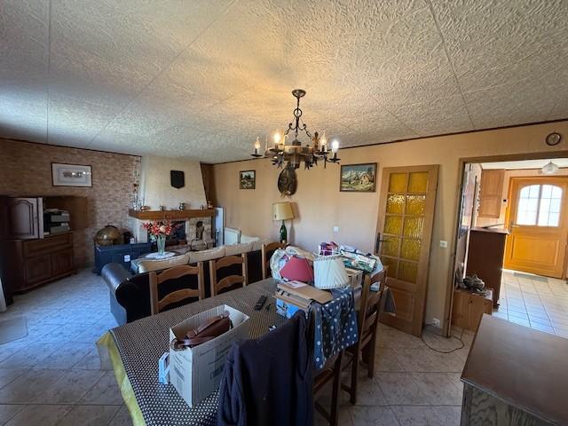 - Entrée avec placards, cuisine aménagée et équipée avec coin repas, chauffage électrique, salle-salon avec cheminée, 3 chambres.