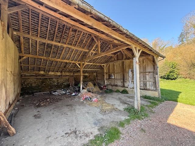 Dans un bel environnement de Vallée, proche Vimoutiers et Livarot, un ancien corps de ferme disposant d'une maison de Maître à rénover, de nombreuses dépendances et source sur le terrain composé de :