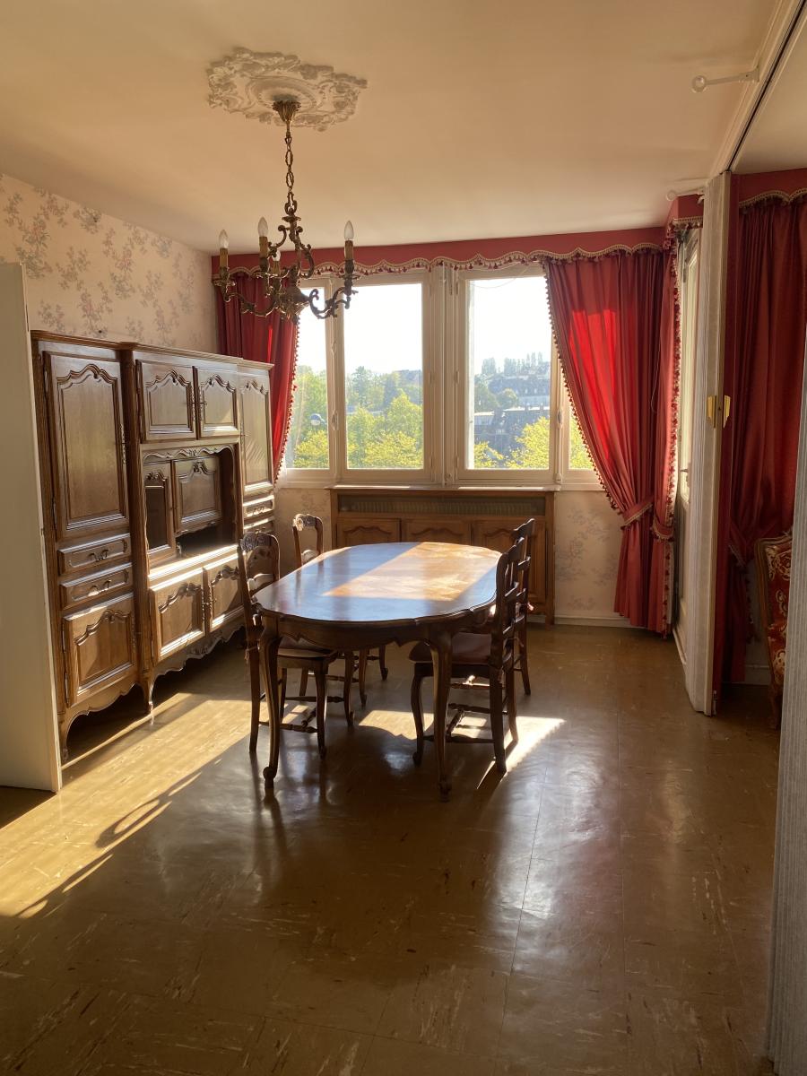 Situé en centre-ville, dans une co-propriété avec syndic, UN APPARTEMENT (S.H. 79.05 m²) situé au 4ème étage AVEC VUE, entièrement à rénover, comprenant :