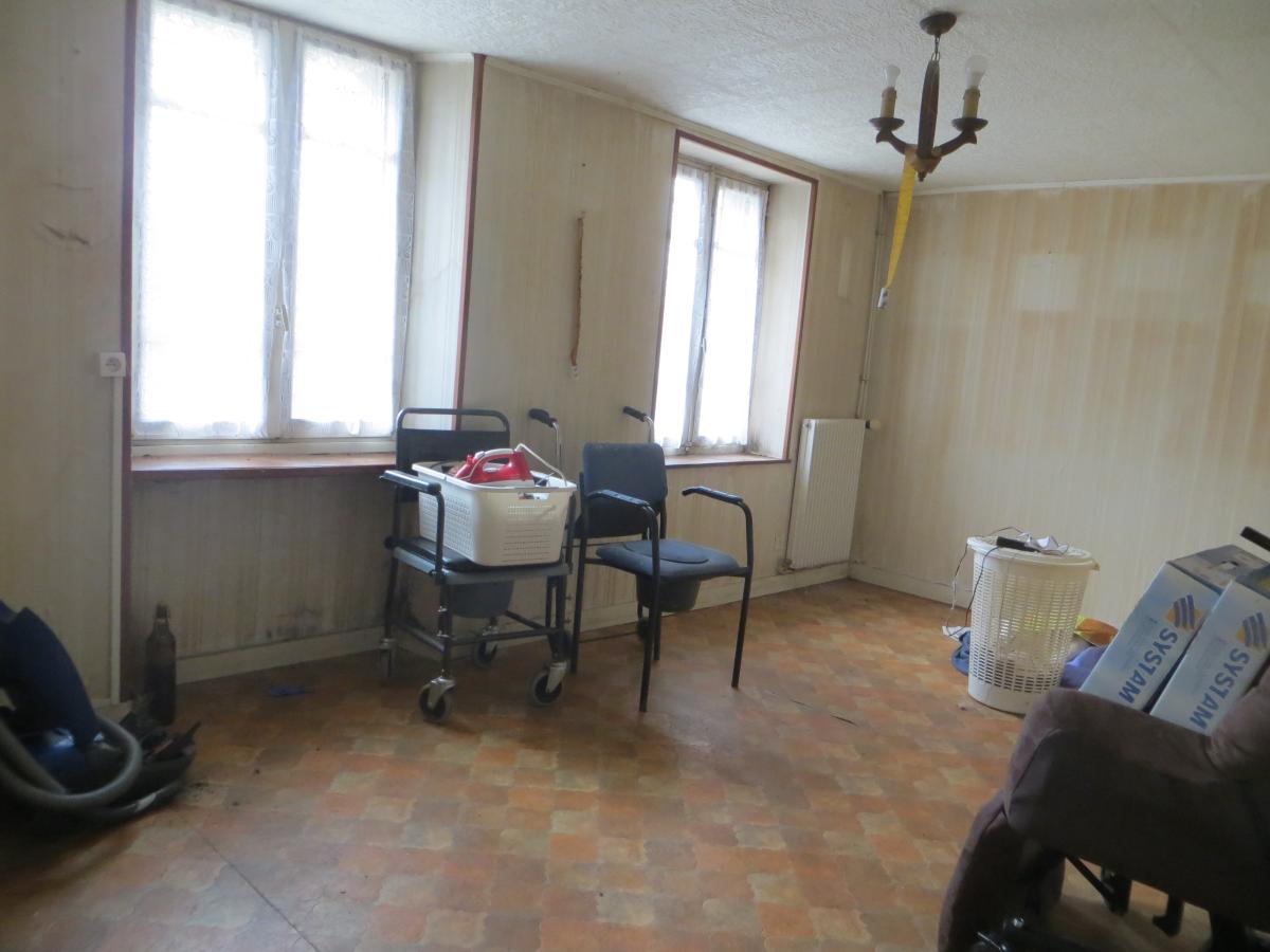UNE MAISON de type longère sous ardoise fibro, composée au rez-de-chaussée d'une cuisine, séjour, chambre, buanderie, WC et douche, et d'une chambre et grenier au premier étage.