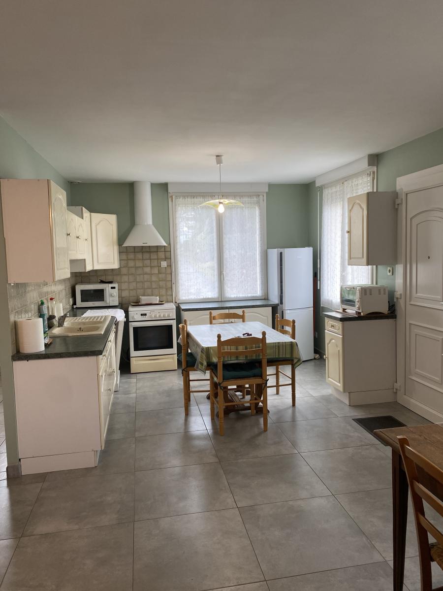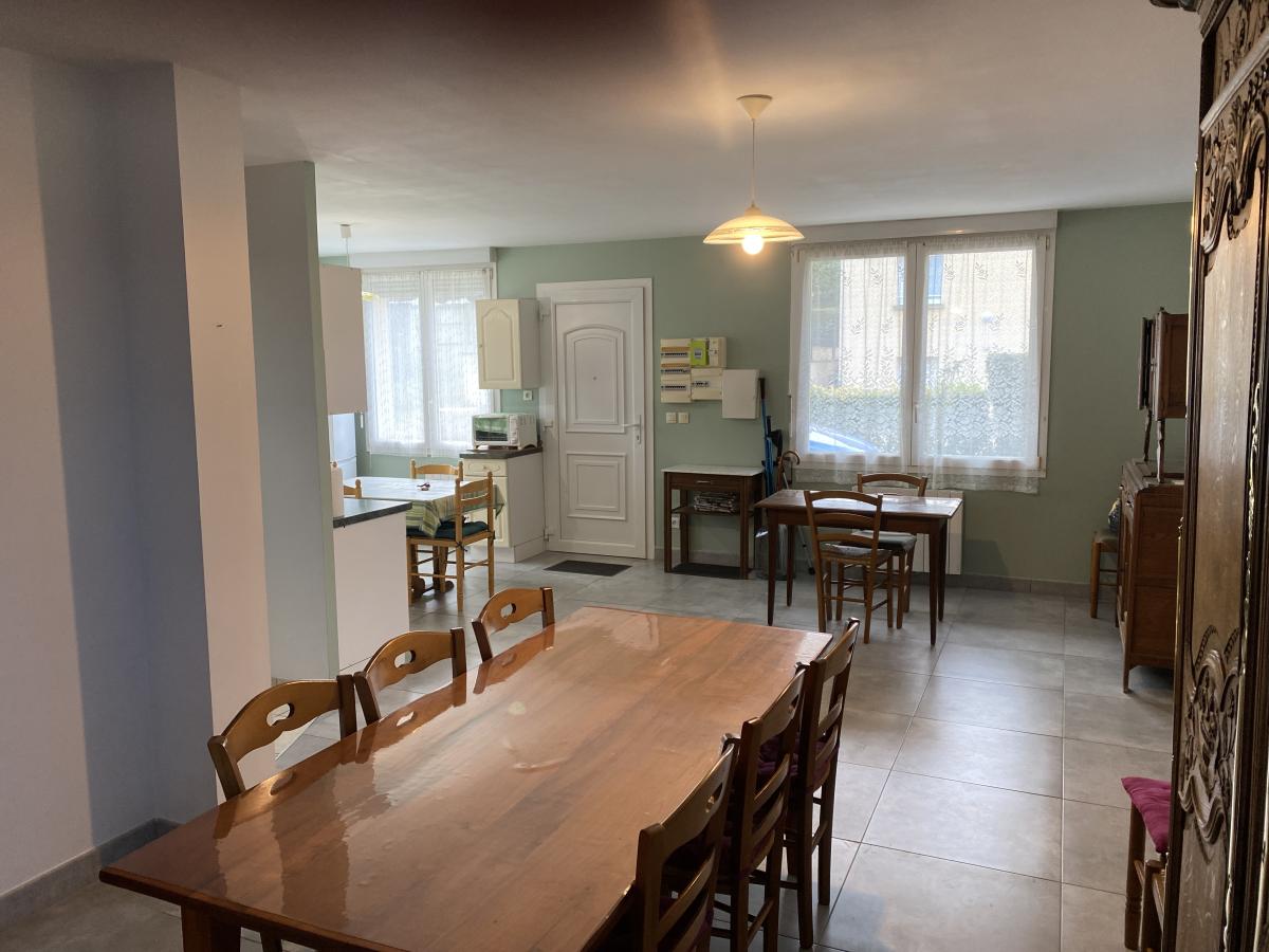 -au rez-de-chaussée: une grande pièce de vie avec cuisine aménagée de 45m², un palier desservant une chambre, une salle d'eau, un W.C., une pièce carrelée d'une surface supplémentaire de 42m² à aménager.