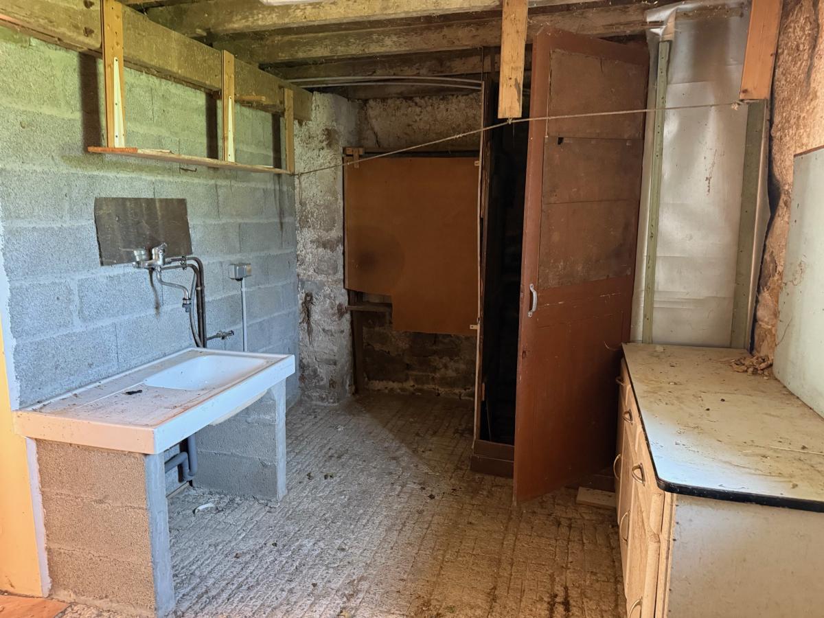 Axe Villedieu / Percy, Maison, à rénover, comprenant : Rez-de-chaussée : entrée/véranda, cuisine, séjour, salon, une chambre avec cabinet de toilette, WC ; A l'étage : palier desservant une chambre, salle d'eau et grenier. A la suite, cave. 2 dépendances. Terrain autour.