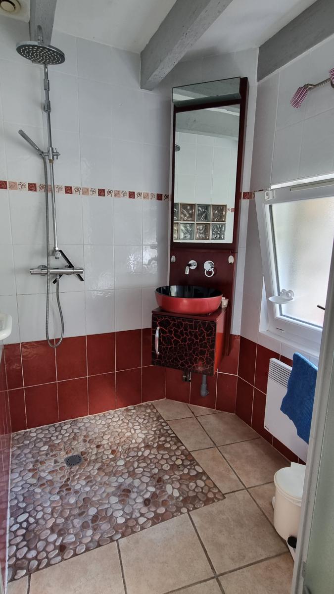 A l'étage : palier desservant une chambre, wc et douche, une chambre, une grande chambre avec douche.