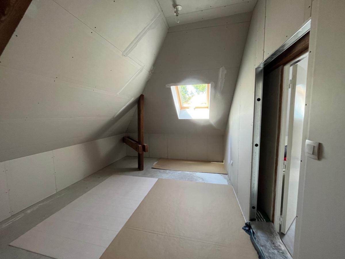 A l'étage : un palier dessert 3 chambres, un débarras, une pièce à aménager en salle d'eau.