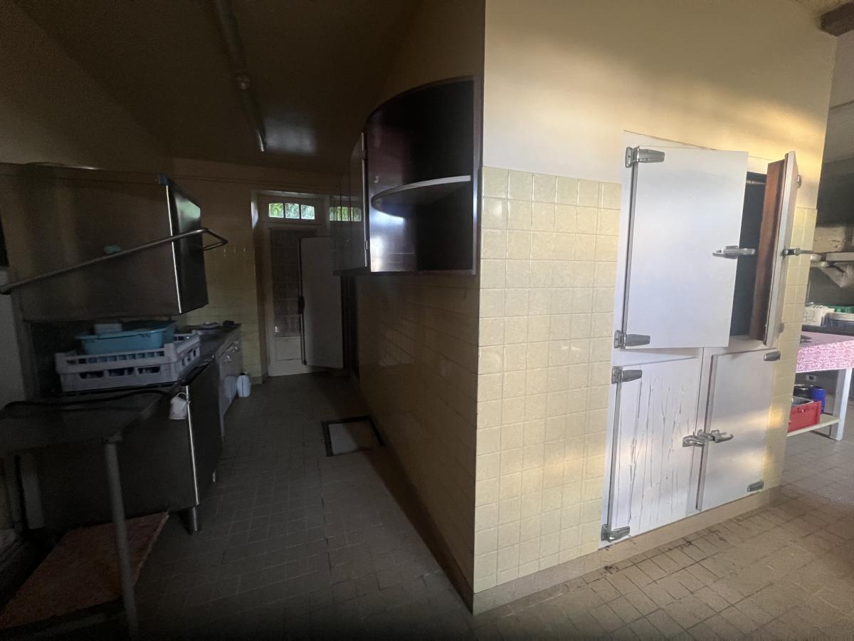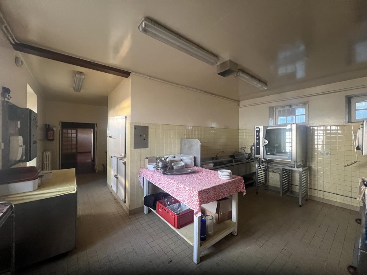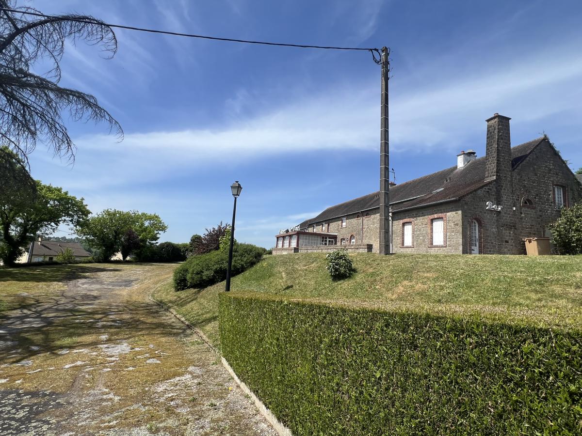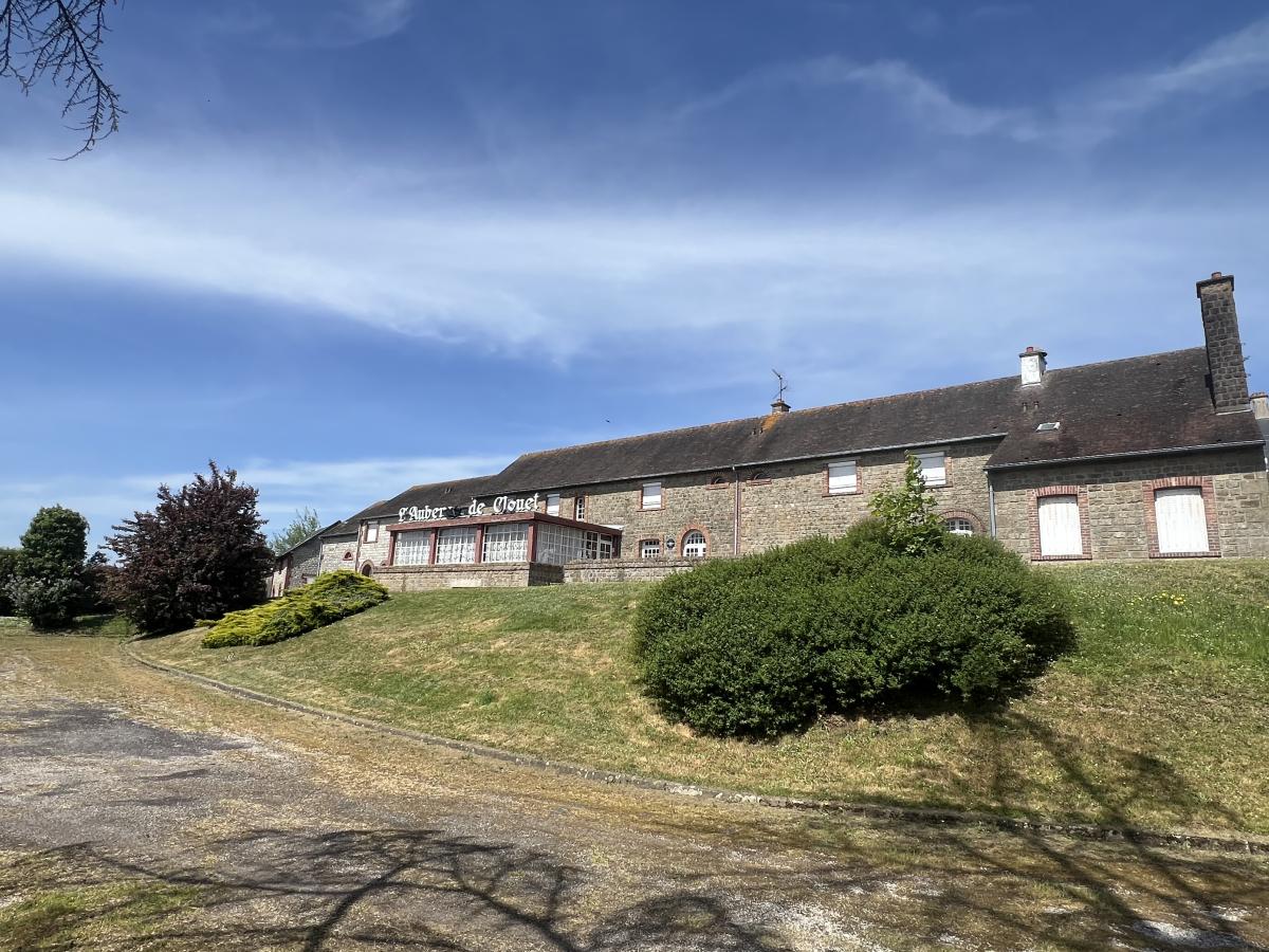 LA FERTE MACE en centre ville : ancien hôtel-restaurant (vendu sans fonds de commerce et sans licence) comprenant au RDC bar, bureau, cuisine, chambre froide, séjour avec cheminée, réception donnant sur terrasse, salle de restaurant, salle de réception, réserve, buanderie, lingerie, WC. Au sous-sol : sanitaires (3 WC et lavabos), cave à vin, chaufferie et réserve. A l 'étage (s'y accédant par 2 escaliers) : couloir desservant six chambres avec salle de bains et WC privatifs, appartement privé de 2 chambres, bureau et SDB, 2 pièces au-dessus de la lingerie. Vaste parking. Dépendance à usage de grange et hangar. Situation idéale pour activité commerciale type restauration, location de salles/chambres ou création de logements d'habitation. Terrain de 3900 m².