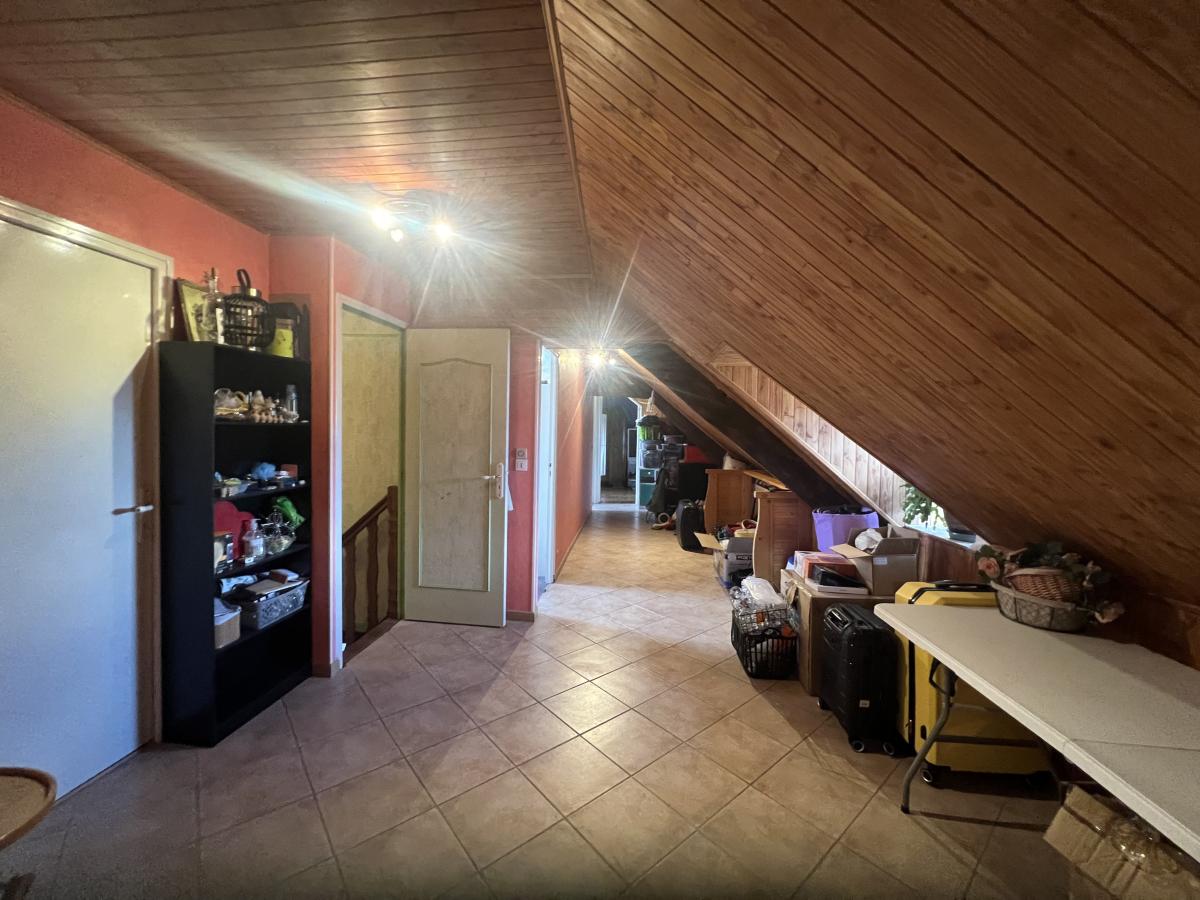 . A l'étage : vaste palier, 3 chambres dont une avec dressing, bureau, salle de bains, WC.