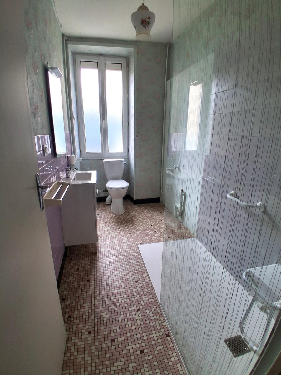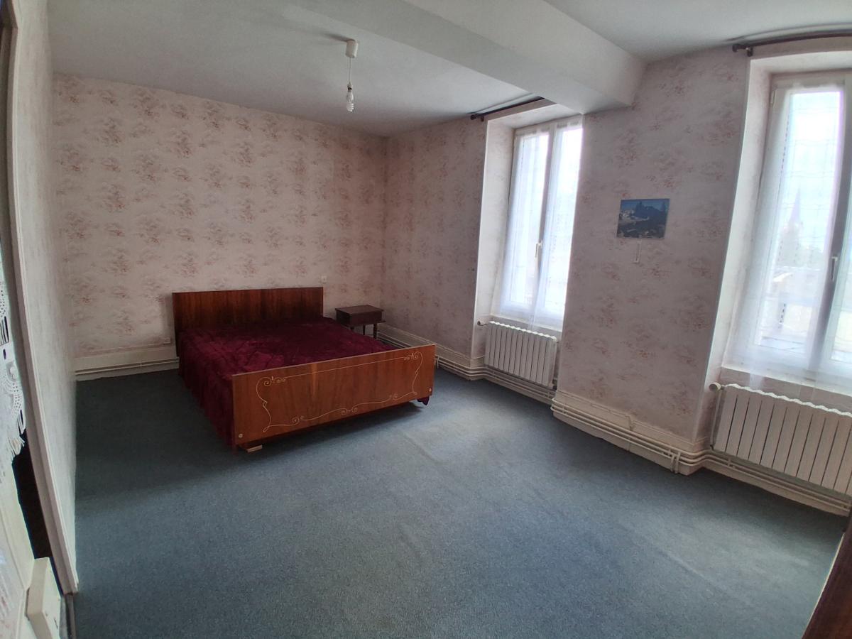 Maison mitoyenne dans bourg avec commerces et écoles comprenant : cuisine - salle à manger (cheminée) - salle d'eau avec WC ; Etage : 2 chambres en enfilade. Grenier aménageable au dessus. Cave. Garage. Chauffage central fuel. Cour et jardin. L'ensemble pour 3a 18ca.