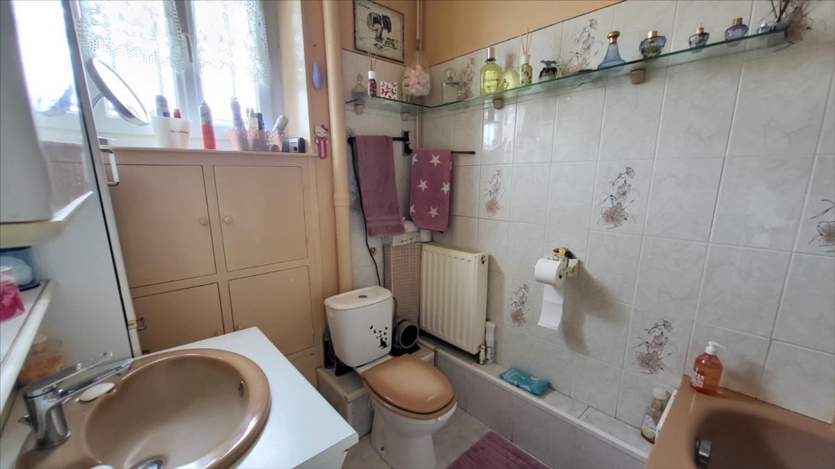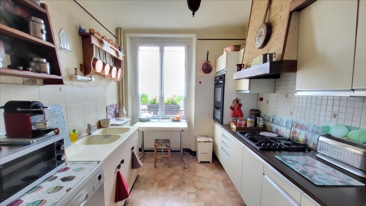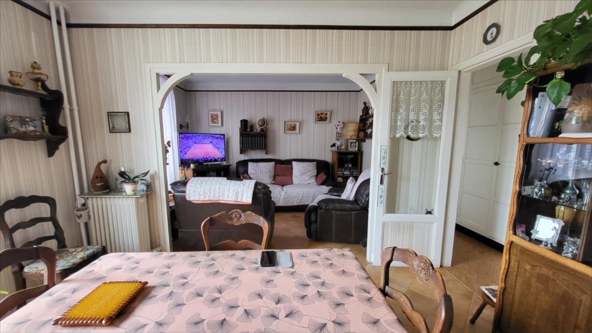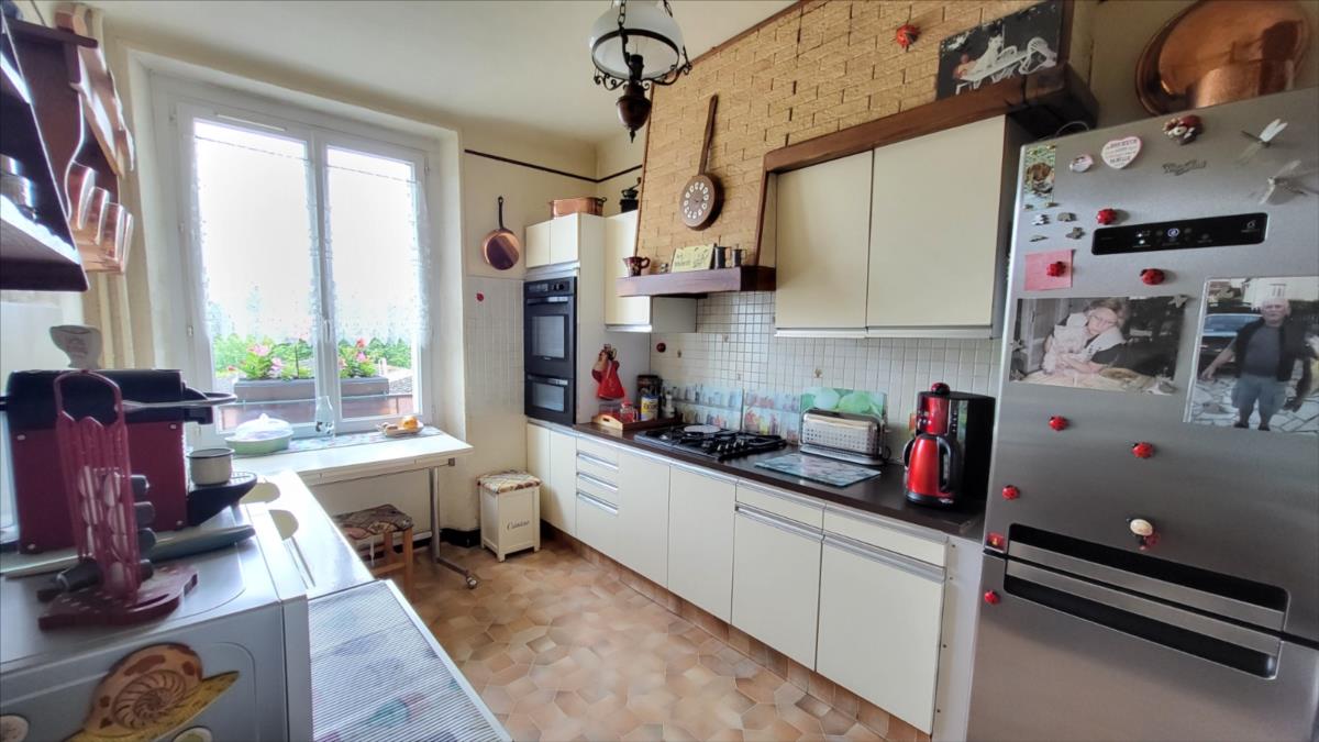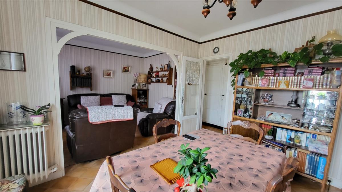 En centre ville avec tous commerces,  immeuble comprenant :Au rez-de-chaussée local commercial d'environ 100 m² en bon état comprenant une pièce avec ancienne vitrine, dégagement avec wc et quatre pièces, réserve ; au 1er étage et par accès indépendant : appartement loué d'environ  comprenant : au rez-de-chaussée : deux garages cimentés; entrée avec escalier donnant sur le 1er étage : cuisine aménagée, séjour, salle de bains avec wc ; à l'étage : couloir et dégagement avec douche, deux chambres, bureau ; chauffage au gaz de ville; sous-sol avec chaudière au gaz ;