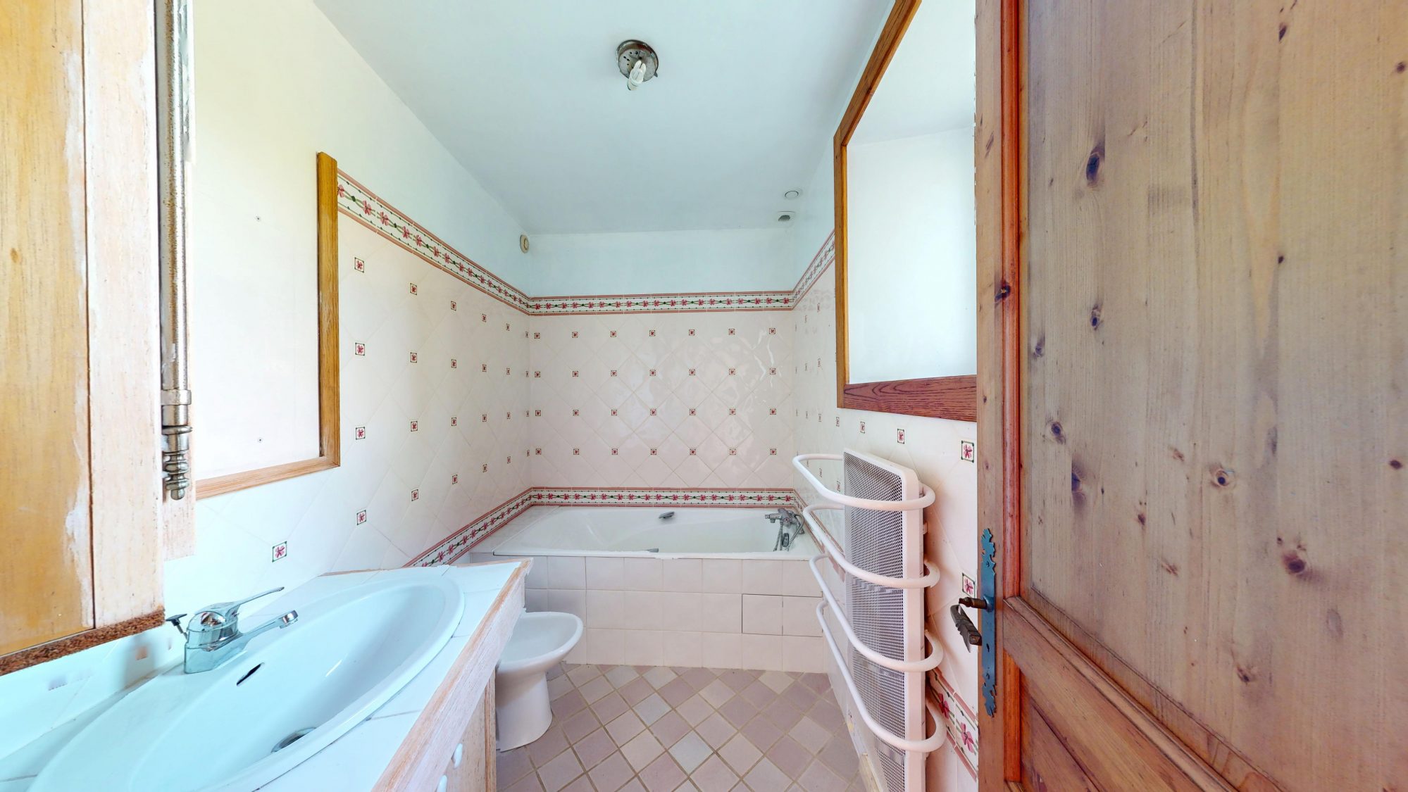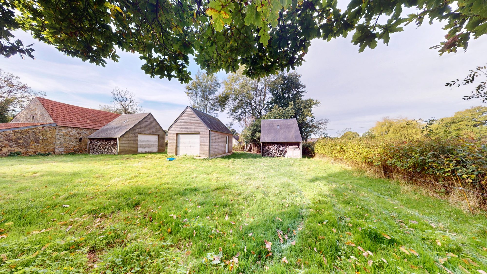 Sur un terrain de 2000 m² environ, maison comprenant : - au rez-de-chaussée : cuisine avec poêle à bois, buanderie, WC avec lavabo, deux chambres dont une avec cheminée insert, salle de bains ; - à l'étage : palier, salon, chambre, salle d'eau avec WC. Huisseries bois double vitrage. Chauffage électrique. Assainissement individuel conforme. Bâtiment en pierres comprenant étable et garage. Trois cabanons en bois avec portes de garages. Terrain autour Les informations sur les risques auxquels ce bien est exposé sont disponibles sur le site Géorisques : georisques.gouv.fr