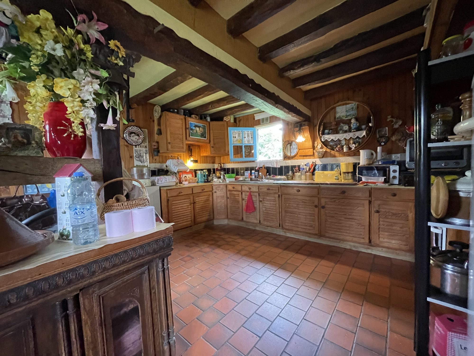 A la campagne Maison normande de 91 m² comprenant : -Au rez-de-chaussée entrée desservant wc et chaufferie , beau séjour de 35 m² avec cheminée, cuisine aménagée et équipée . -A l'étage mezzanine desservant deux chambres dont une avec salle de bains et wc. Un chalet de 12 m² vient compléter la maison L'ensemble sur un terrain de 3140 m²
