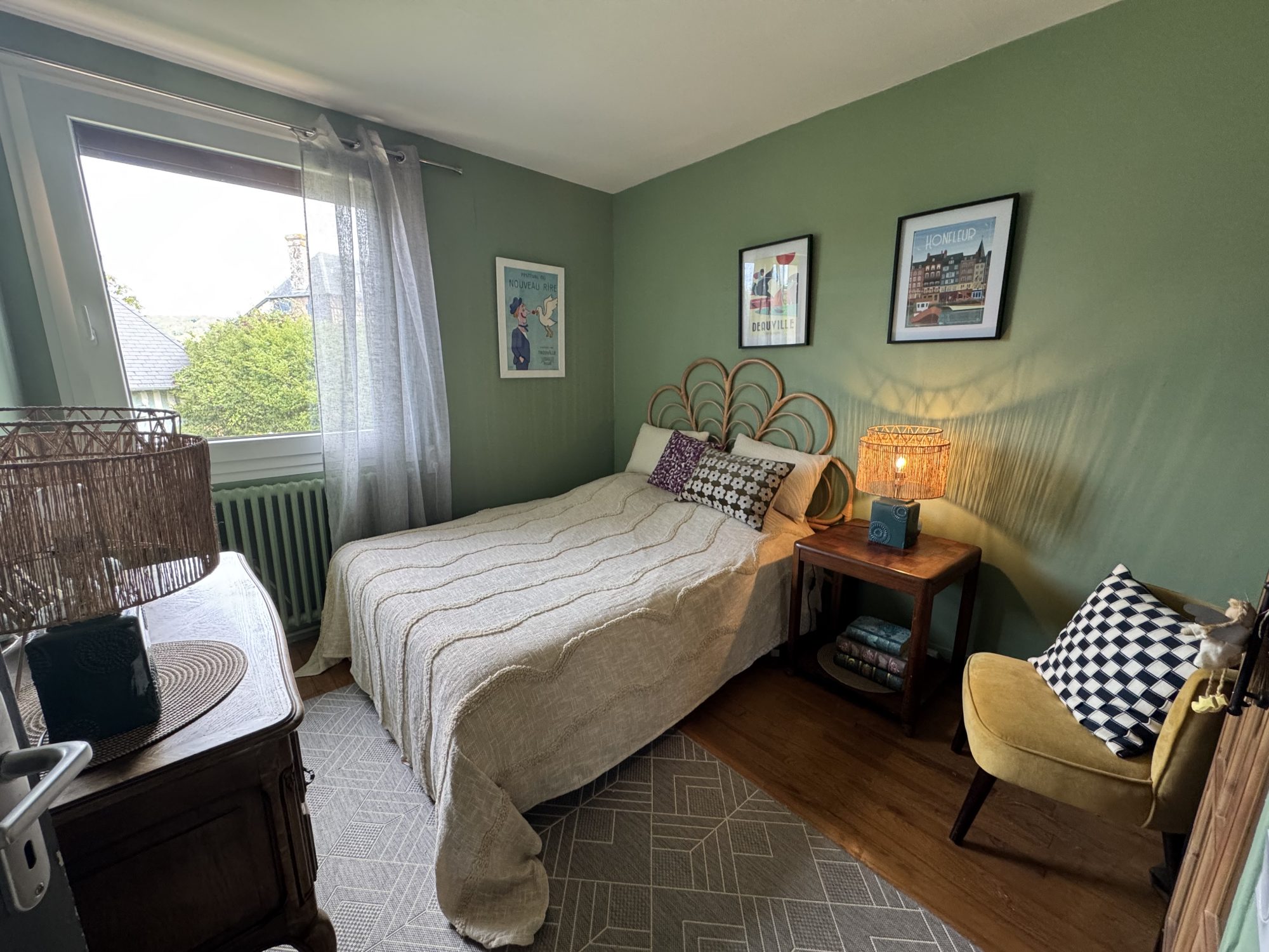 RDC surélevé: entrée, séjour-salon de 35m², cuisine aménagée, chambre, salle d'eau et wc