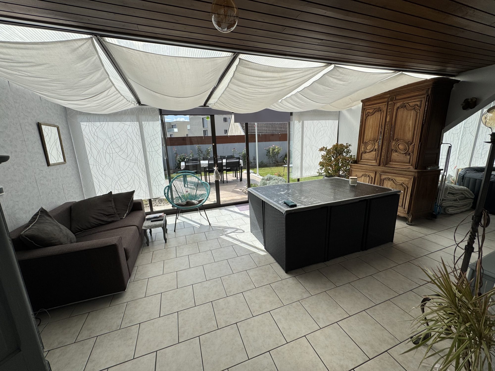 RDC: entrée, séjour-salon, véranda, cuisine aménagée, chambre, salle d'eau, wc, garage.