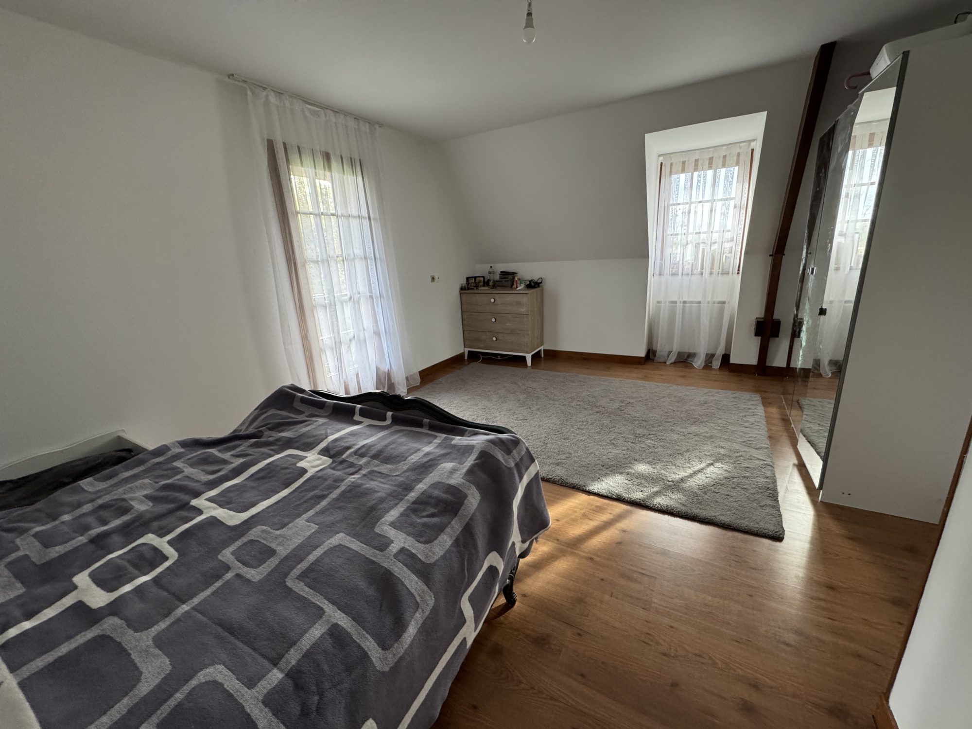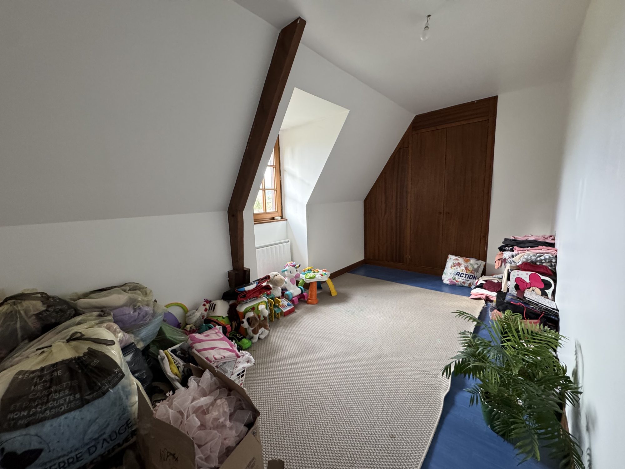 A l'étage: palier, 3 chambres (11, 12 et 20 m²), salle de bains et wc.