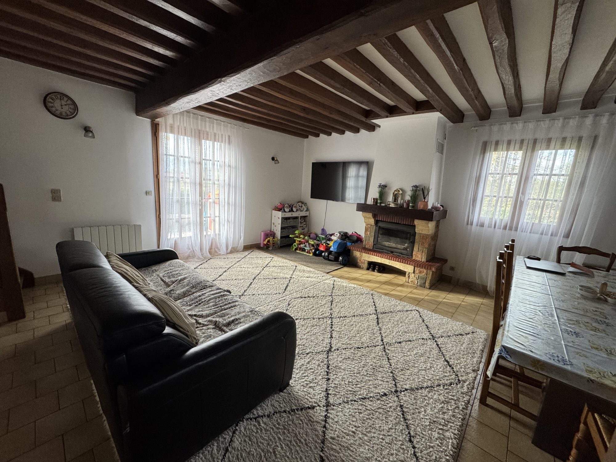 RDC: entrée, séjour-salon avec cheminée et terrasse, cuisine, chambre avec salle d'eau et wc.